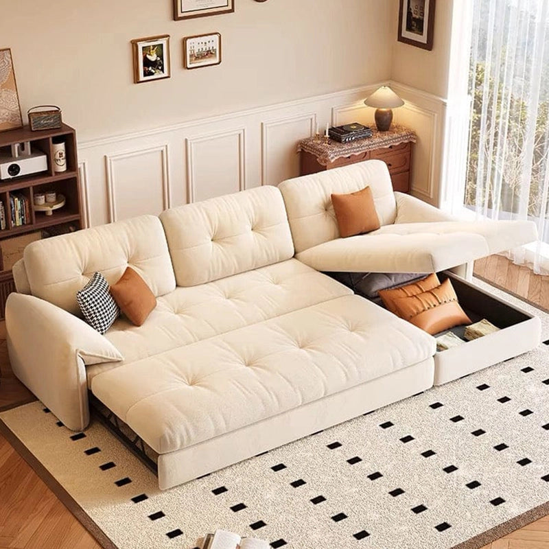 Storage under chaise with vertical tufted backrest – convertible couch sleeper, sofa cum bed